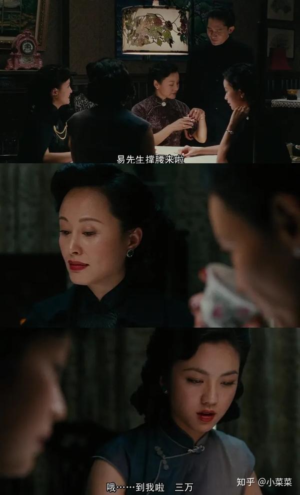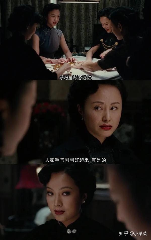 我在家里陪长辈打了几个月麻将,我们的打法和电影中不一样,只能碰不能吃,但是有一些规则是相通的。起手打出去的字一般都是孤零零没伴的,要么就是两头的边张,像五条这种正中心的张,第一张打出去实在是太少见了。只有2种可能,一种是手上除了五条,没有任何别的条字,但这样的情况一般也会留几圈看底下的出牌情况;另一种就是电影里的送牌。易太太接受了她的送牌,气氛有所缓和,微微笑了笑,又给存在感低的王佳芝带话题,「人家麦太太弄不清楚了,以为汪里头的官,都是太太们牌桌上派的呢。」