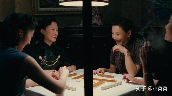 在这群阔太太中,王佳芝的存在感很低。她的首饰个头小,又没什么光泽。不过,这也不能怪她。毕竟,人家是真太太,而她一个卧底,哪能比得过。所以,王佳芝在这场麻将戏里,小心翼翼到处陪笑。麻将桌四人的基本情况介绍完毕,自然就要开始重头戏了。都说「三个女人一台戏」,那四个女人又会是什么情况呢?梁先生升官易家出了力,所以马太太借着梁先生升官的事恭维易太太,「你听易太太的就对了。」梁太太很懂,满怀喜气地看了易太太一眼。