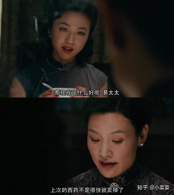 而易太太作为官宣的女主人,在这种场合下自然是想方设法地摆高姿态。易先生进门来便给她端茶,讨论钻戒的时候,她嗔怪道,「上次那只火油钻,不肯买给我」,又用手肘轻轻碰了下易先生。秀恩爱的戏份做得很足。这边王佳芝听着她们聊钻戒,一直没吭声,眼神里有点怯,跟前一轮对付马太太时的得意相比,低调了很多。